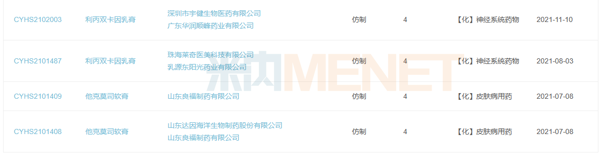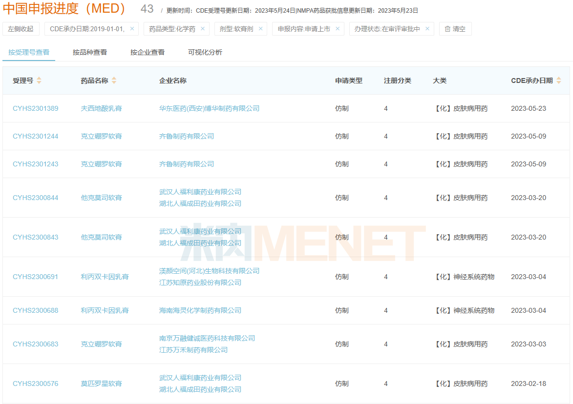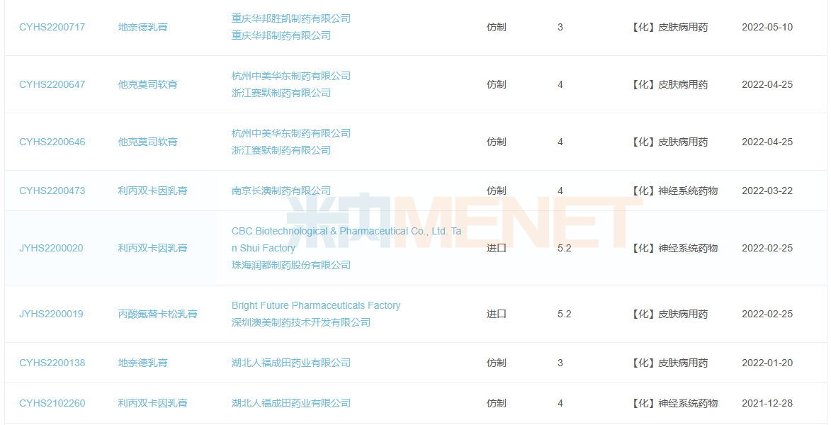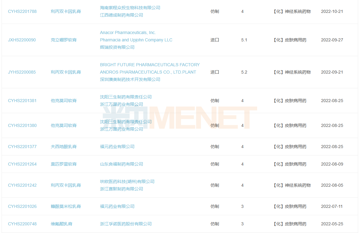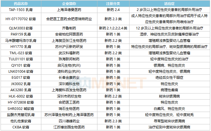 合肥恩瑞特药业的HY-07170702软膏、上海泽德曼医药的TAP-1503乳膏均在今年获CDE承办受理。