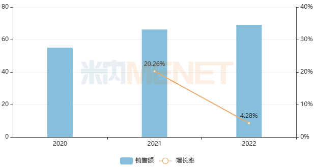 软膏剂作为经皮给药的一种剂型,在医院的皮肤科、外科等科室广泛应用。米内网数据显示,近年在中国公立医疗机构终端化药软膏剂市场规模持续扩容,2021年销售额突破60亿元大关,2022年再创新高,同比增长4.28%。