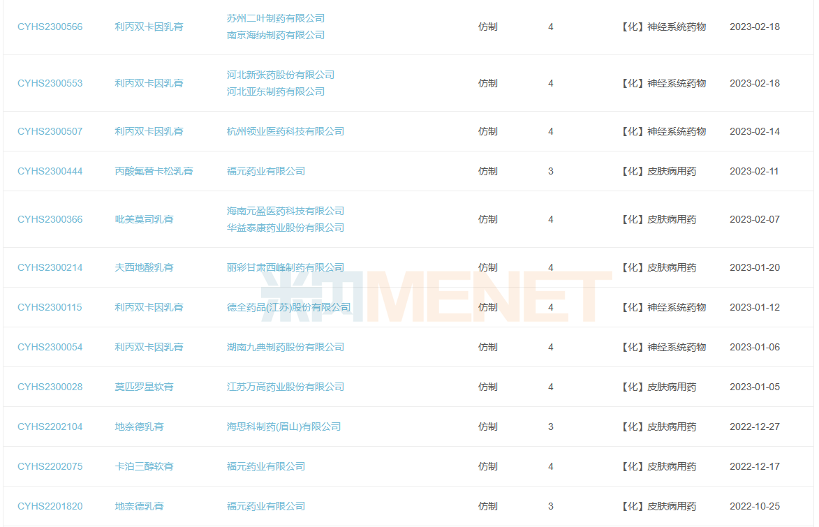 今年以来,有4个软膏剂(5个受理号)获批上市,数量已超过2022年全年。其中,扬子江药业集团广州海瑞药业的盐酸奈康唑乳膏和天津医药旗下天津金耀药业的戊酸二氟可龙乳膏均为首仿。