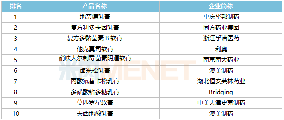 2022年中国公立医疗机构终端化药软膏剂产品TOP10