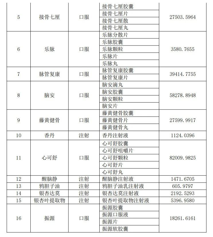 在这些品种当中,部分产品已经在此前的一些省级中成药集采“榜上有名”。其中,鸦胆子油乳注射液曾在广东联盟集采,口服复方血栓通、口服华蟾素和接骨七厘也都是山东省中成药集采品种。